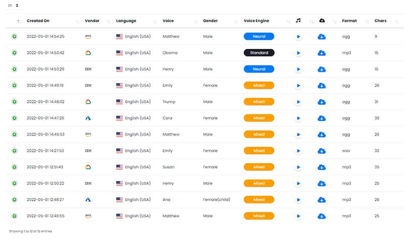 Our TTS service covers +90 languages and +110 kinds of voices and is increasing continuously. We believe it meets most of your needs.
