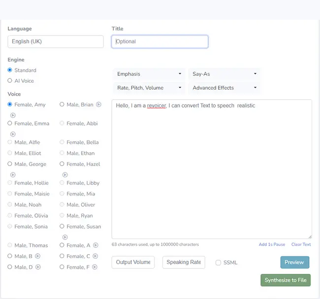 Over +90 Languages, +109 voices The most realistic AI Text To Speech online for